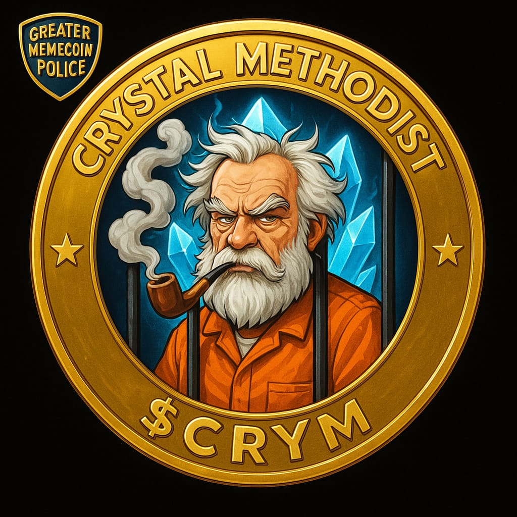 Once upon a headline, a pipe, and some very shiny crystals, the Greater Memecoin Police tried to lock up the fun. The community responded the only way that makes sense on-chain: we tokenised the chaos. Welcome to $CRYM—where scandal meets liquidity and the sermon is on the blockchain.